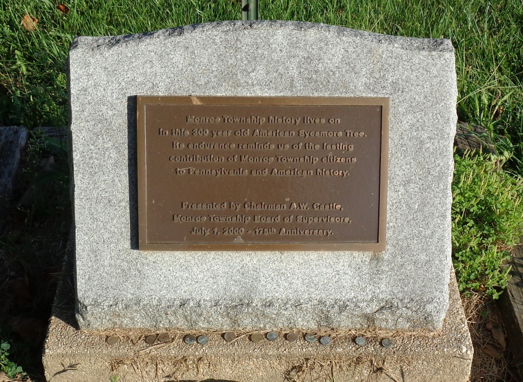 ![]() Just outside of Boiling Springs, just off of "Old Stone House Rd." & "Leidigh Dr.". An American Sycamore Tree that is over 350 years old, and is 10 - 11 feet in diameter. |