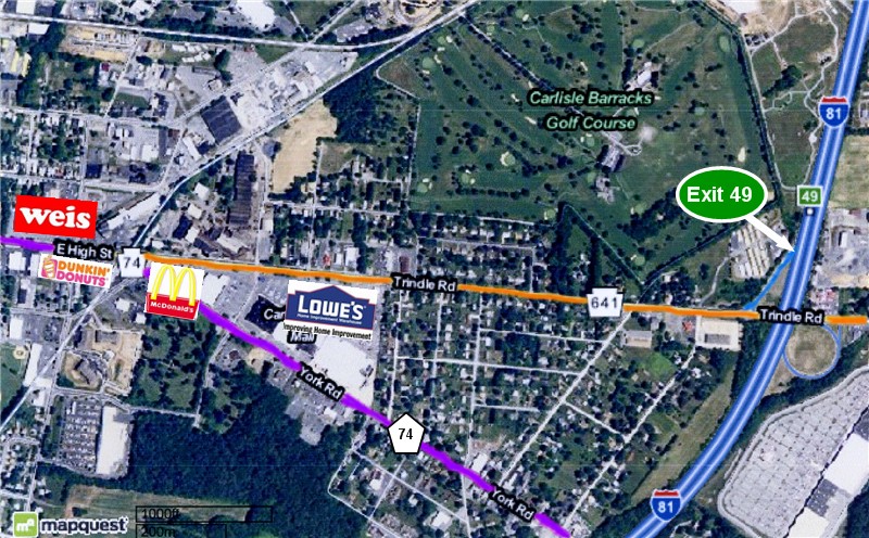 After Getting Off Exit 49, Turn Right on to Rt. 641 West. About a Mile Down The Road. You Will Pass a Lowe's, a McDonald's, a Dunkin' Donuts, a Weis, and You Will Merge into Rt. 74 North. ![]() |