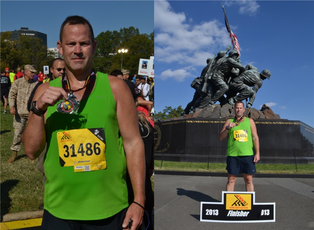 ![]() At The Finish Line of The 2013 Marine Corps Marathon |